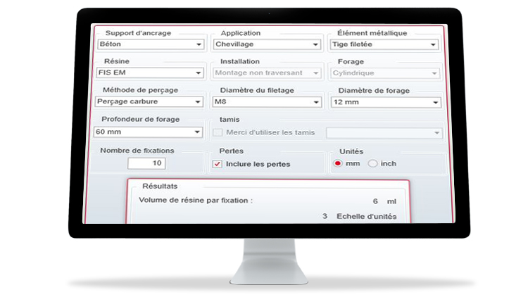 Il permet de déterminer le volume de résine nécessaire à la réalisation de vos scellements chimiques.