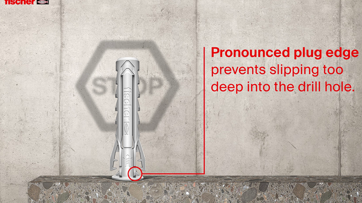 Wat maakt de nieuwe fischer SX Plus zo bijzonder ten opzichte van zijn voorganger? Voornamelijk zijn speciale gripvleugels. Het is de eerste plug op de markt die prefixatie van de schroef mogelijk maakt voor vrije handen tijdens de installatie. Zodra de plug wordt geplaatst, worden de gripvleugels naar binnen gedrukt, waardoor de schroef vergrendelt en op zijn plaats wordt gehouden. Bij vergelijkbare pluggen moeten de schroeven worden vastgeschroefd om voorfixatie te bereiken. Dit is met name handig voor toepassingen boven het hoofd en bespaart bovendien montagetijd. De smalle plugvorm vereenvoudigt ook het instelproces in het boorgat - met tot 30 procent minder inspanning dan voorheen.